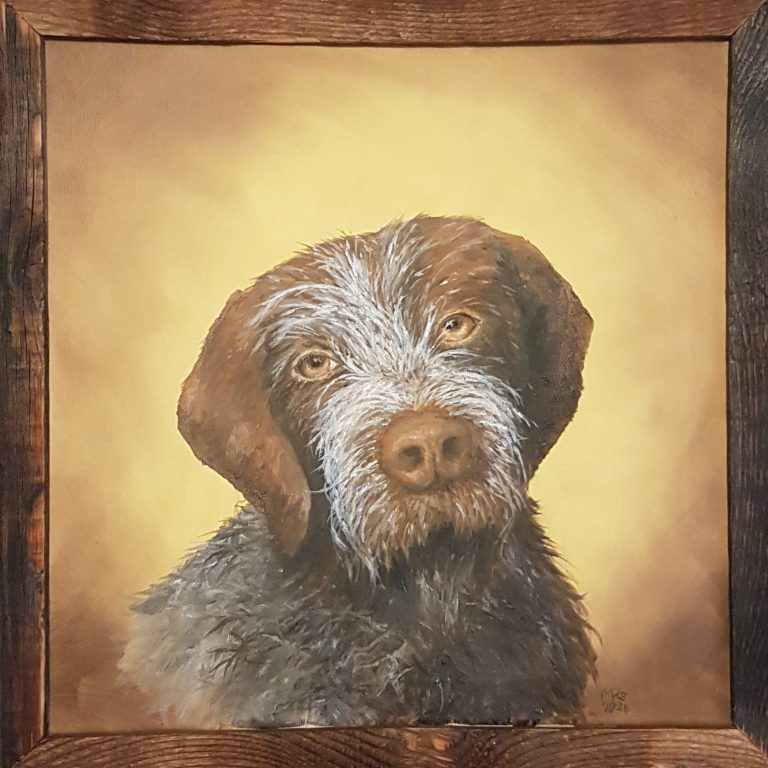 "Donna" den treuen Blick unserer Deutsch-Drahthaar-Hündin habe ich hier versucht mit einem Portrait einzufangen... Öl auf Leinwand 40x40cm