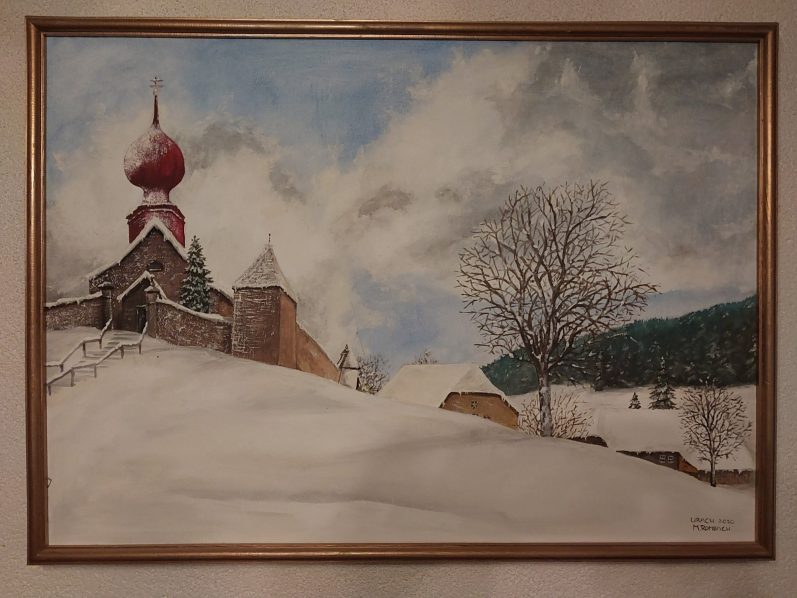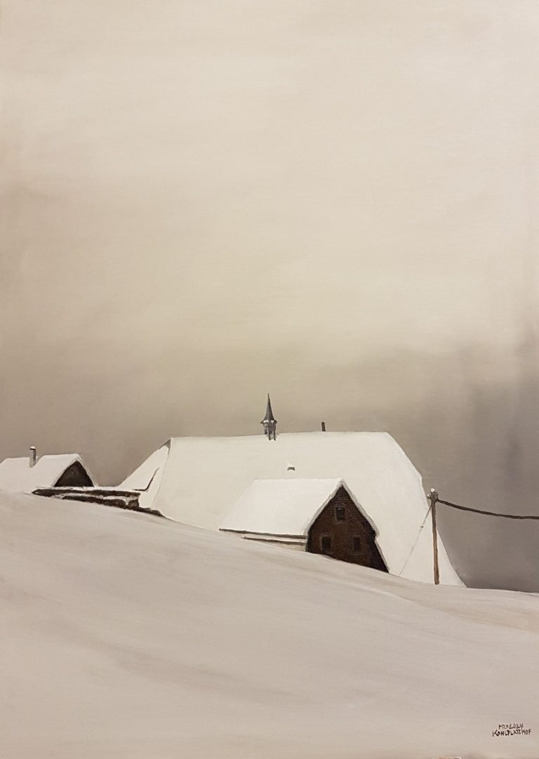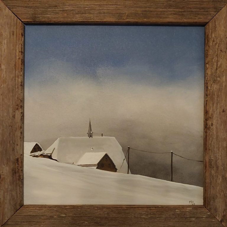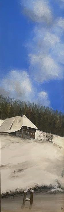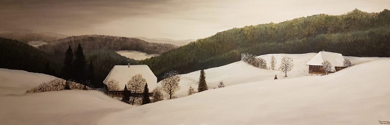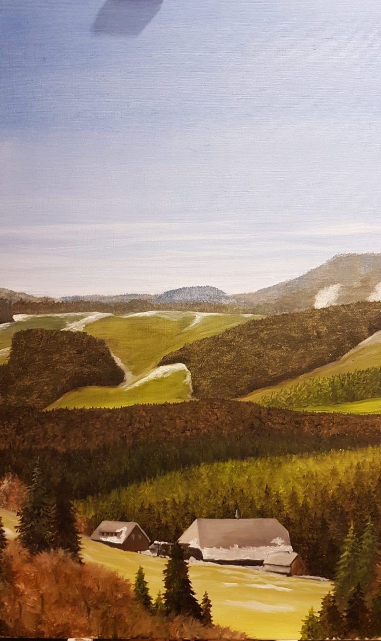 Ölbilder male ich meistens auf Bestellung, z.B. als Geschenk für Kollegen oder für die Stadt Vöhrenbach, die diese als jährlich neues Motiv für Weihnachtskarten übernimmt. Da ich viel draußen arbeite, male ich gerne die heimische Landschaft, bevorzugt im Winter, da der Schnee die Konturen der Landschaft und der alten Höfe heraushebt.